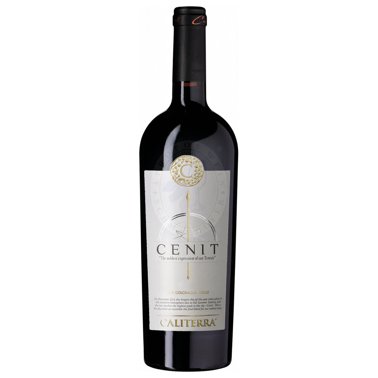 Sergio Cuadra, Kellermeister bei Caliterra, hat der Weinwelt einen neuen, sehr eleganten Wein präsentiert, den Cenit. Aus Cabernet Sauvignon, Malbec und ein wenig Petit Verdot ist ihm ein komplexer, tiefdunkler Wein gelungen. Die handverlesenen Trauben reifen 18 Monate in französischer und amerikanischer Eiche. Die Flaschen sind einzeln nummeriert! Cenit: die neue Weltklasse von Spitzenerzeuger Caliterra!