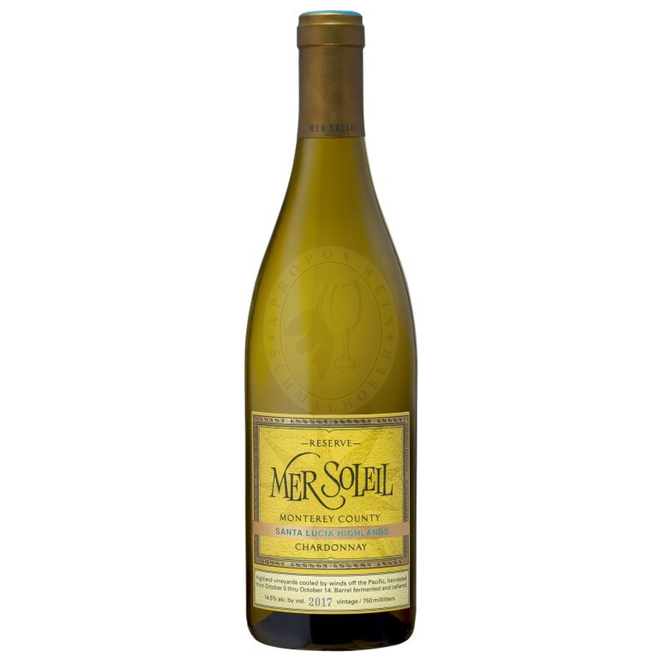 Der Mer Soleil Reserve Chardonnay 2020 stammt aus den Santa Lucia Highlands an der kalifornischen Central Coast – eine Lage mit kühlendem Nebel und starken Windbedingungen, die eine verlängerte Reifezeit ermöglichen und dem Wein markante Frische, Komplexität und Herkunftskraft verleihen. Dieses klare Herkunftsverständnis und Qualitätsdenken spiegelt sich in unserer Philosophie bei Apropos Wein wider: familiär geführt, terroirorientiert und qualitativ überzeugend.