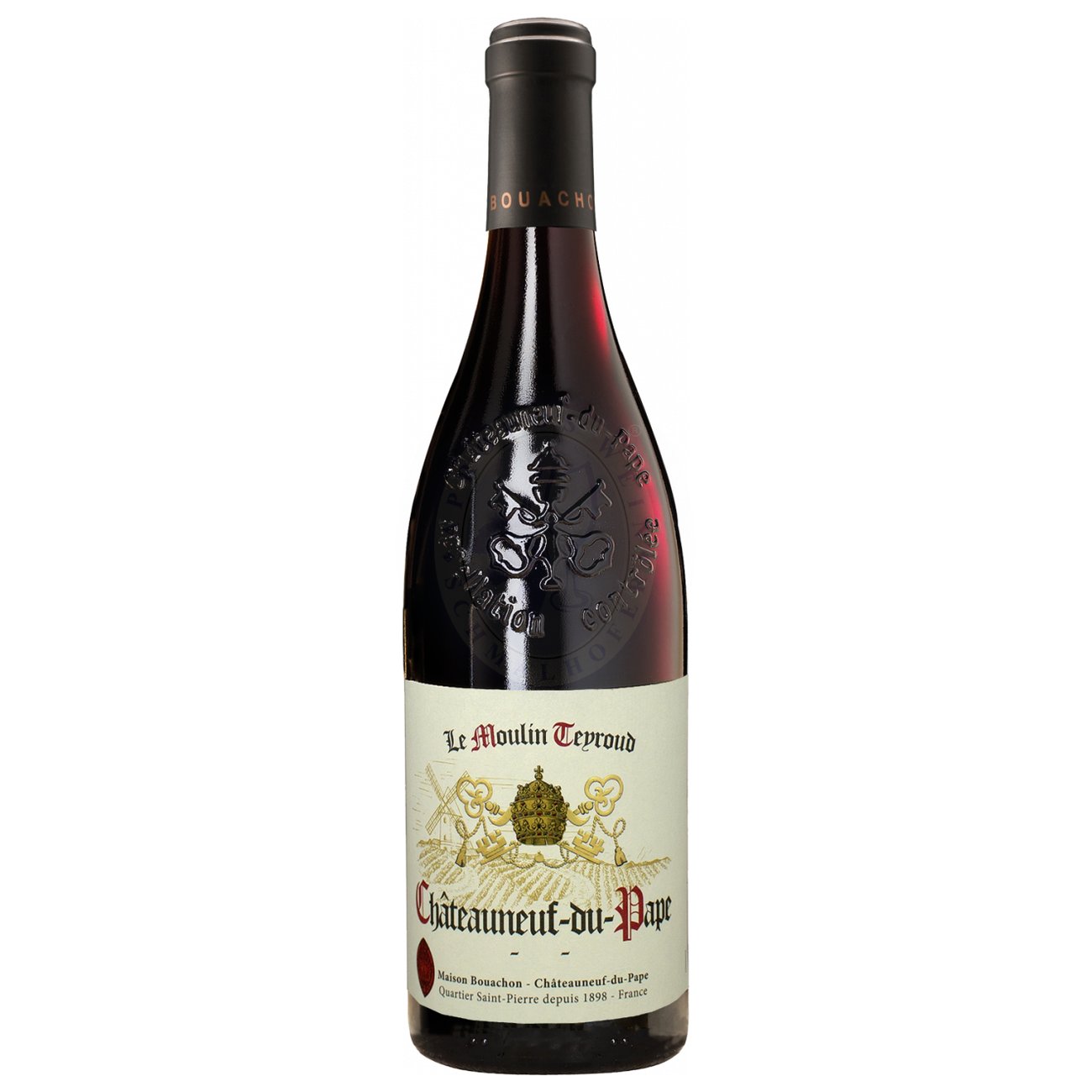 Der Le Moulin Teyroud Châteauneuf-du-Pape 2022 präsentiert sich in einem tiefen Rubinrot mit violetten Reflexen. In der Nase entfalten sich komplexe Aromen von reifen schwarzen Früchten wie Brombeeren und Pflaumen, begleitet von würzigen Noten von Pfeffer, Zimt und einem Hauch von Leder.