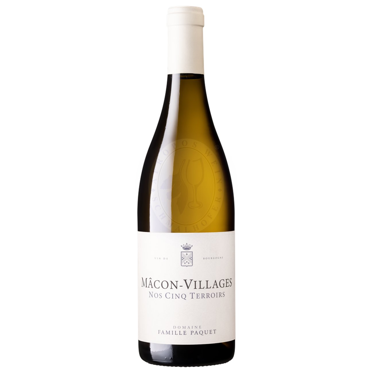 Der Mâcon-Villages „Nos Cinq Terroirs“ 2024 von der Famille Paquet ist ein charaktervoller Weißwein, der die typischen Merkmale der Rebsorte Chardonnay und die Einzigartigkeit des Mâconnais eindrucksvoll zur Geltung bringt. Die Trauben stammen aus fünf verschiedenen Gemeinden – Cruzille, Lugny, Prissé, Loché und La Roche-Vineuse – und wachsen auf kalkhaltigen Lehmböden. Die Vinifikation erfolgt durch eine temperaturkontrollierte Gärung in Edelstahltanks, gefolgt von einer Reifung auf der Feinhefe, um die Frische und Komplexität des Weins zu bewahren.