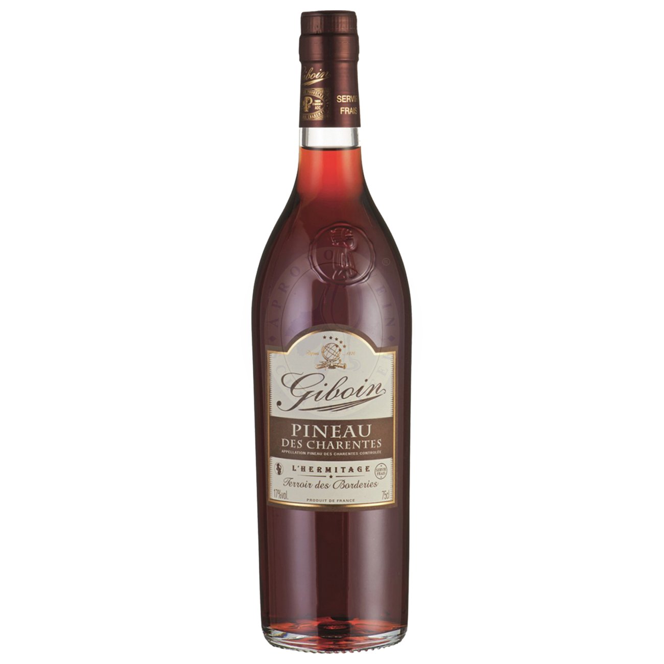 Der Pineau des Charentes Rouge “Giboin” ist ein subtil raffinierter Likörwein aus dem Hause Giboin im berühmten Cru-Gebiet L’Hermitage – ein südwestfranzösisches Familienweingut, das seit 1830 Merlot-Trauben auf eigenem Weinberg kultiviert und Cognac destilliert
