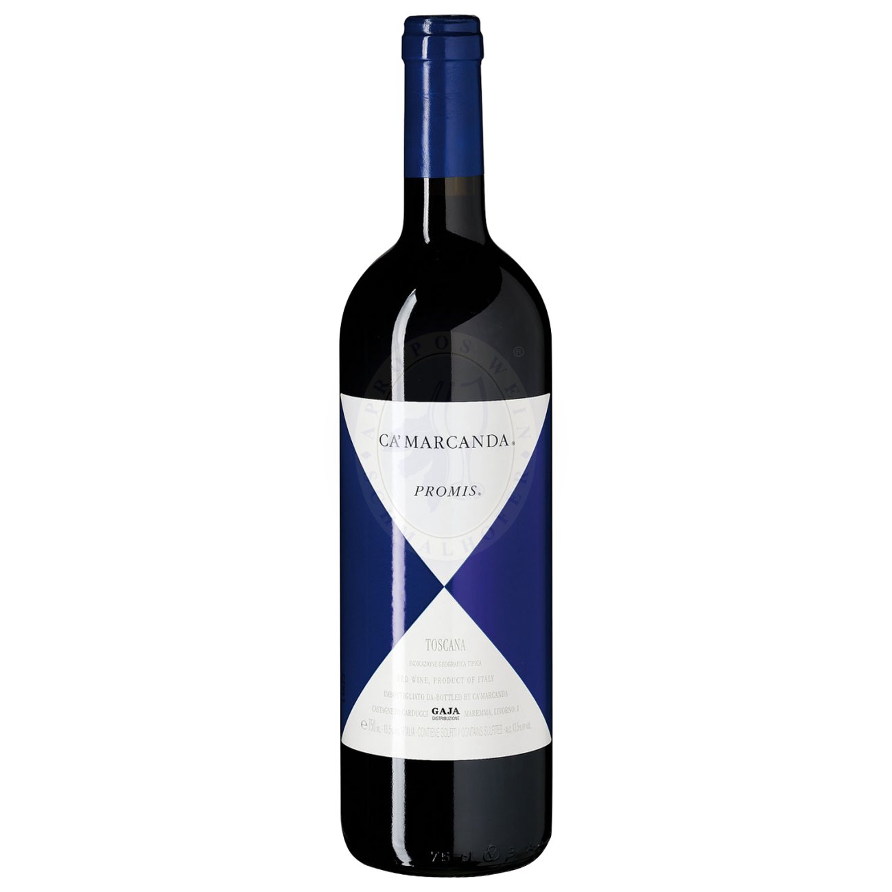 Der Promis IGT Ca’Marcanda ist eine lebendige Assemblage aus der renommierten Familie Gaja, die sich durch eine helle und tiefe Granatfarbe auszeichnet. Dieser Wein wird aus einer harmonischen Kombination von 55% Merlot, 35% Syrah und 10% Sangiovese hergestellt, die aus den reichen, dunklen Böden von Bolgheri stammen, die hauptsächlich aus Lehm und Ton bestehen.