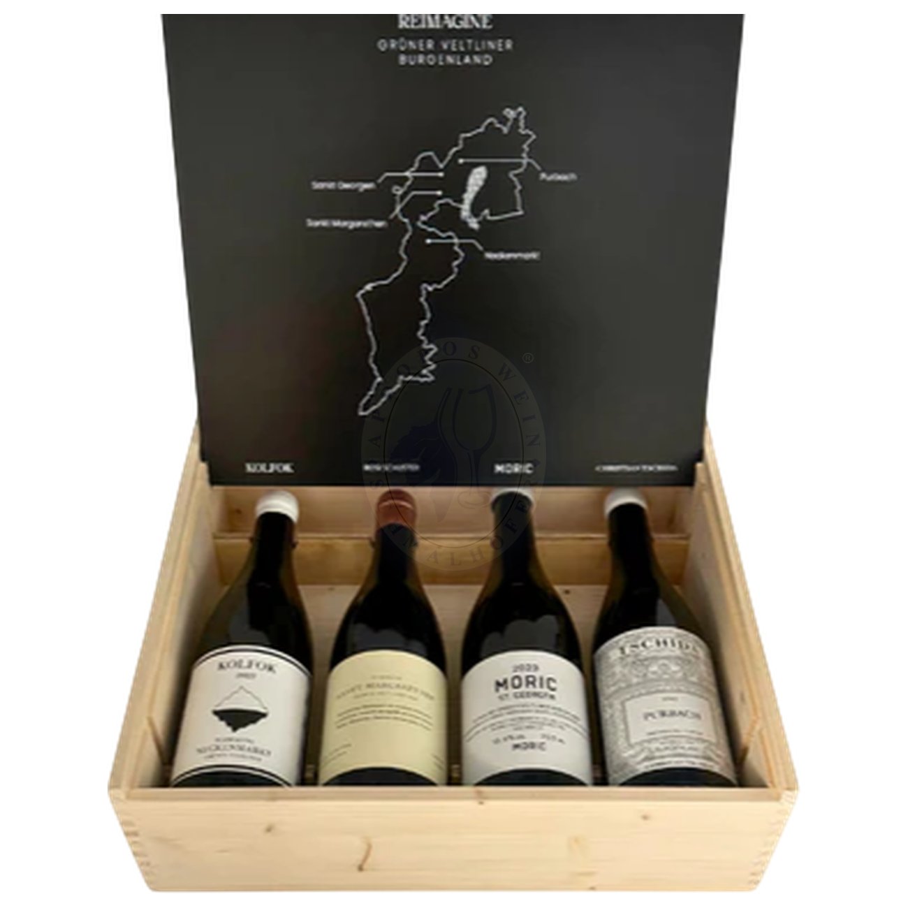 Der Reimagine Pannonia Sammlerbox – 4 × Grüner Veltliner (Holzkiste) ist eine elegante und durchdachte Kollektion, die das Burgenland in seiner Vielfalt und Stilistik über vier unterschiedliche Ortsweine hinweg darstellt.