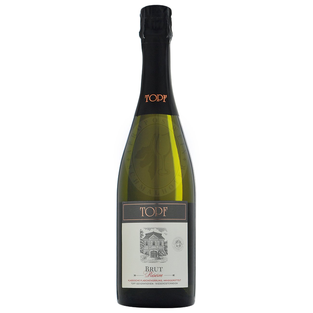 Der Brut Reserve NV g.U. des Weinguts Topf ist ein vielseitiger Aperitif, der die Charakteristika der Strasser Rieden in einem Schaumwein vereint. Der Brut Reserve präsentiert sich in einem hellen Gelbgrün mit silbernen Reflexen und einem feinen, anhaltenden Mousseux. In der Nase entfalten sich Aromen von gelber Tropenfrucht, Biskuit und Blütenhonigtrasser Rieden in einem Schaumwein vereint.